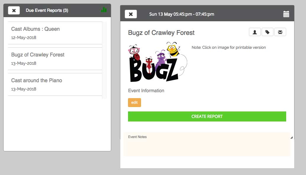 For certain entertainment events then there will be an event report that will need to be completed for that event. If a report is required then the event will show in the Events Due module