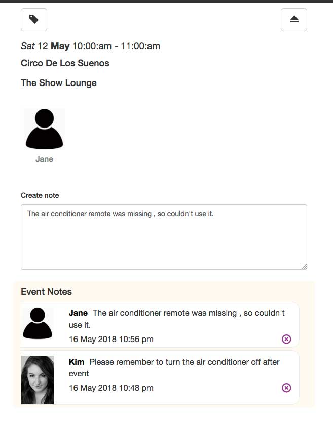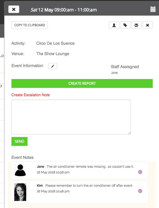 Another new feature of tedEMS is the ability for all staff to be able to add text notes against any event. These are only seen within the resort and can be used as communication between resort staff and with the ents manager. Notes can be added anywhere you see the icon.