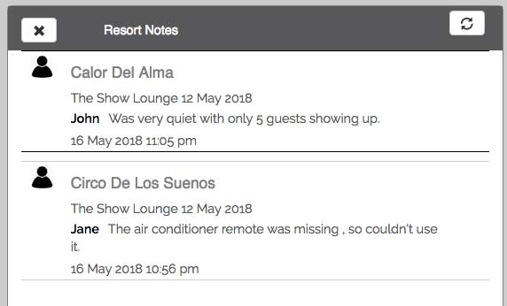 As well as being able to see notes when looking at an event, they are also displayed in the main Notes module on your dashboard. To refresh the notes list then click the icon.