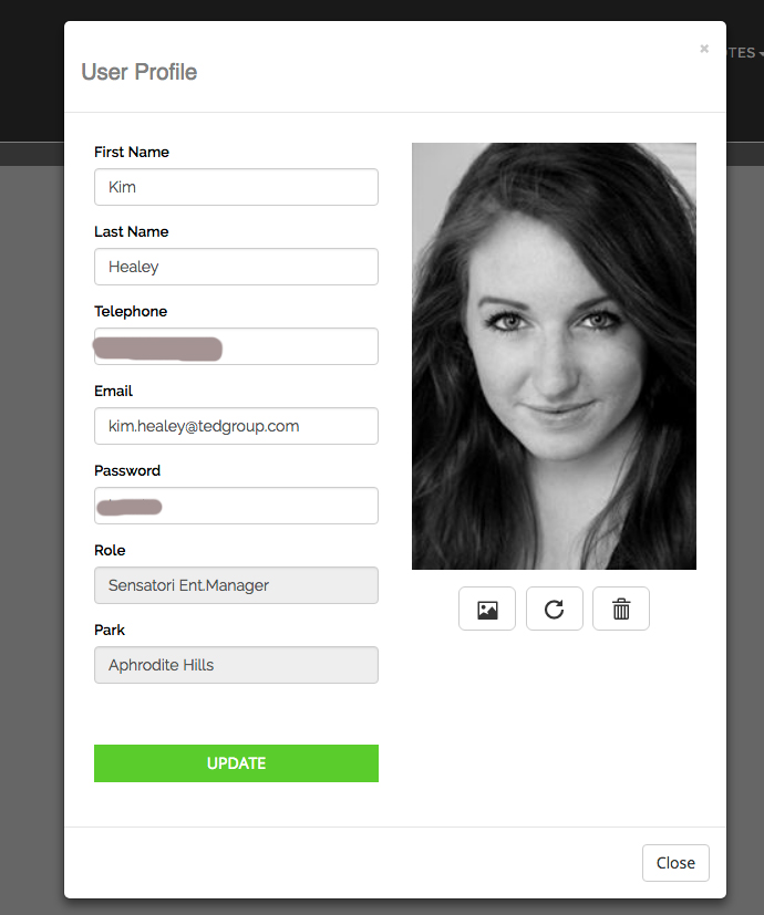 This is your user profile and account for tedEMS - where you can change your password or other contact details and also upload a profile photo to be used on the system by clicking the icon.