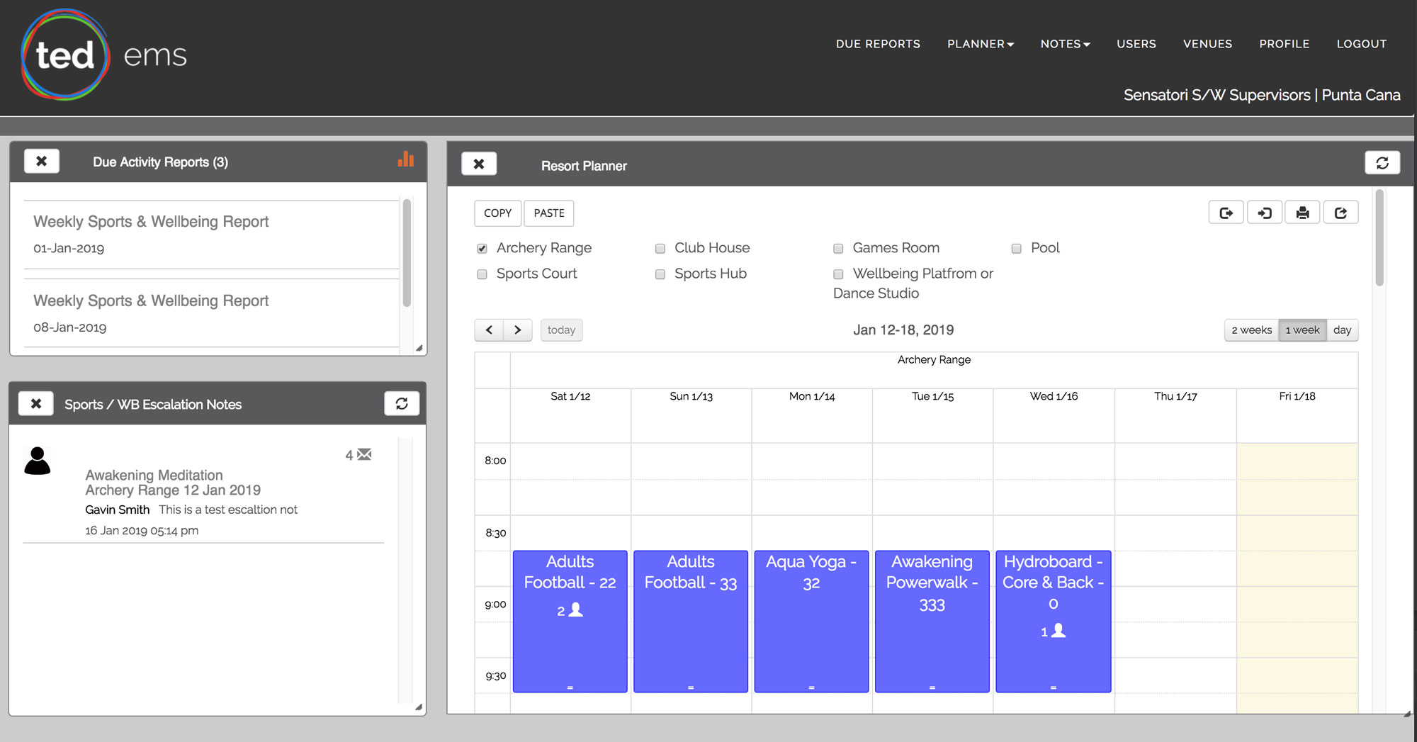 tedEMS is the new artiste, entertainment and activity reporting and management system for Sensatori and Holiday Village resorts.