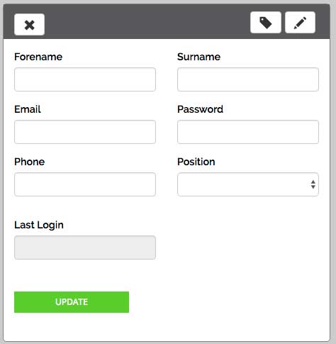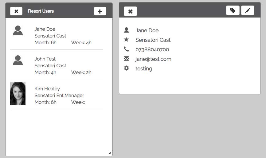 This module shows all the resort tedEMS users and allows you as ent manager to create/edit or delete any of your staff accounts, as well as being able to see how many hours they have been scheduled for in the current month or week. Click the icon to add a new user or select the user to view and click the icon to edit their current account details.
